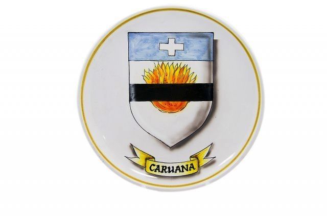 Quand on est allé à Gozo, on est allé à une église où il y avait des pierres tombales dans le plancher. Chaque pierre tombale avait un blason. J’ai trouvé le blason de Caruana (Carwana – mon grand-père a changé…