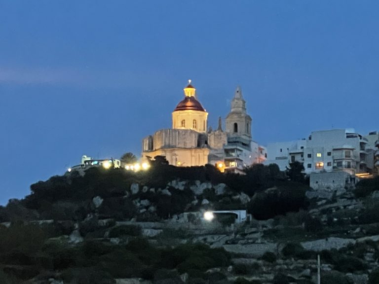 Today we hung around Mellieha and checked out the town’s church and surroundings. The church is approached from our seaside flat via a winding road. From the church is a beautiful view of the bay (and the winding road)…the enormous…