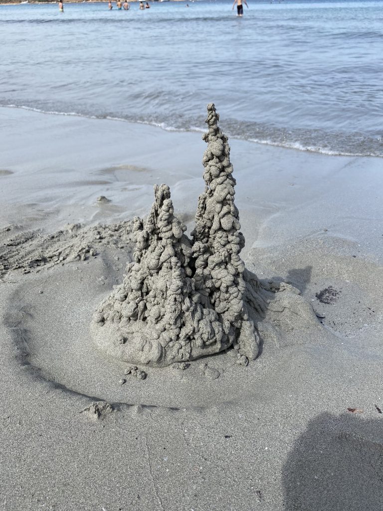 Hier, on est allé à la plage. J’ai trouvé beaucoup de coquillages. On a construit les châteaux goutte à goutte. Après, on est allé pour…