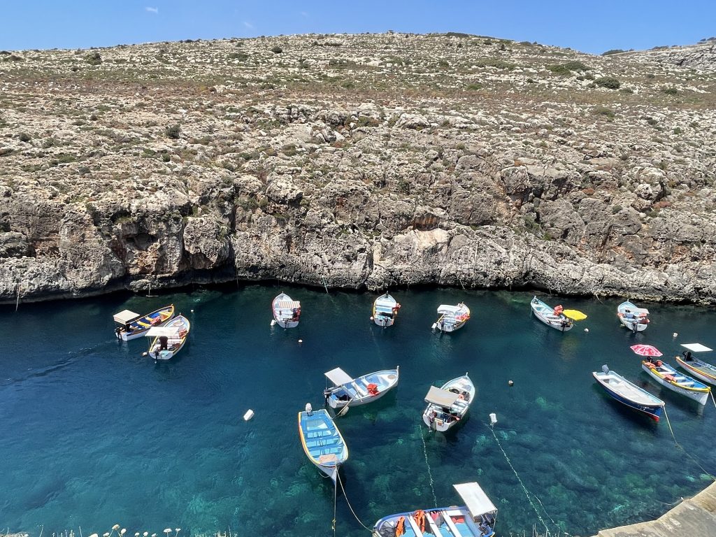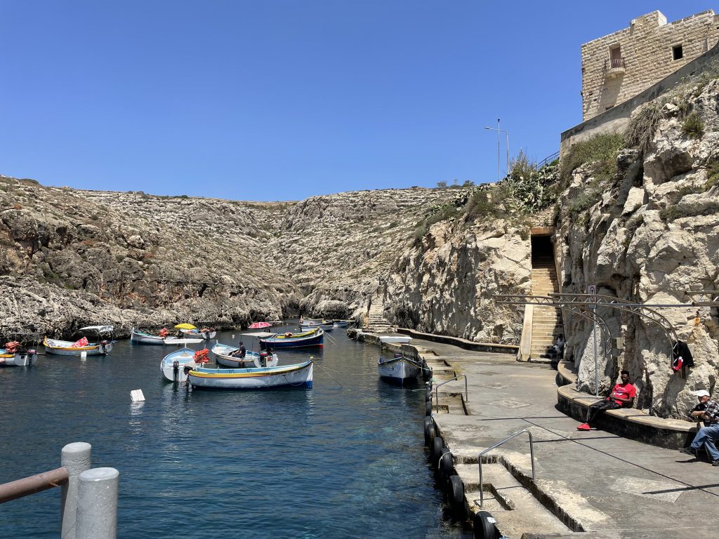 The west side of Malta consists of cliffs rising out of the Mediterranean Sea. In the southwest are a series of caves within the cliffs that provide some magnificent views of the sea. We went down to the inlet where the boats await to take you on a tour. Then we were off.