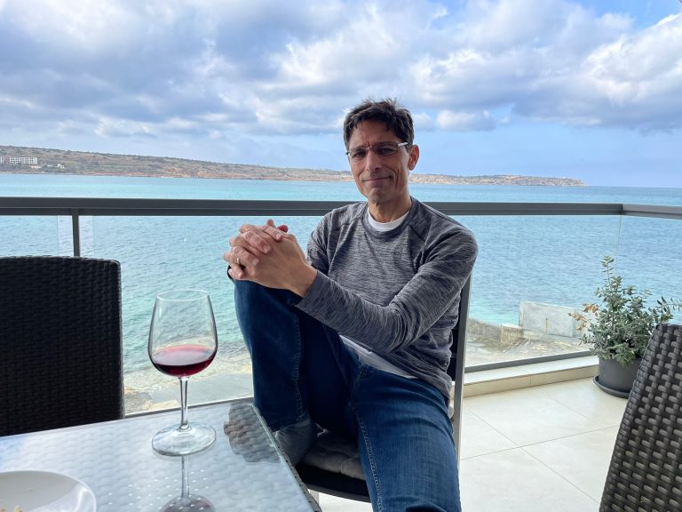 After landing in Malta, we split up between two vehicles as we had too much luggage to fit in one vehicle.  Kim and the boys took a taxi while Connie and I wrestled with GPS, driving from the wrong side of the vehicle on the wrong side of the road with a stick shift at my left side.  We eventually caught up to Kim and the boys who were patiently waiting by the sea (not a bad place to kill some time) where we finally settled into our flat on the Mediterranean Sea.  Not a bad view…I think we’ll get used to this.  A glass of wine, fresh air, and finally relaxing after a marathon trip was enough for the lack of sleep to catch up with us.  Bed time was early…and we slept hard!