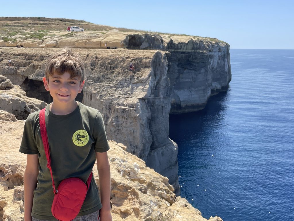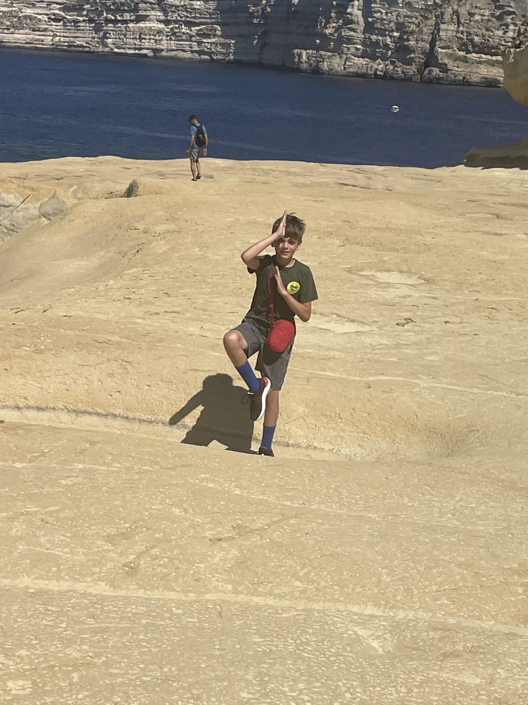 Before I get into today’s events, flashback to 2009 when we last visited Malta. While here we rented an old van…it wasn’t the greatest but it got the job done. One day we ventured to Gozo, and we went to Ta Cenc cliffs. I ventured down a path I probably shouldn’t have. The path which substituted for a road was narrow, and my left front wheel slid off the road, rubbed against some limestone rocks (Malta is basically one large chuck of limestone, so to find a limestone rock under my wheel wasn’t altogether surprising), and went flat. It was a hot day and changing the wheel was not fun.