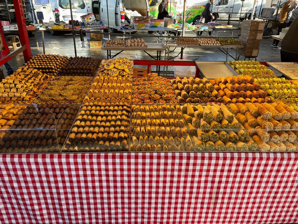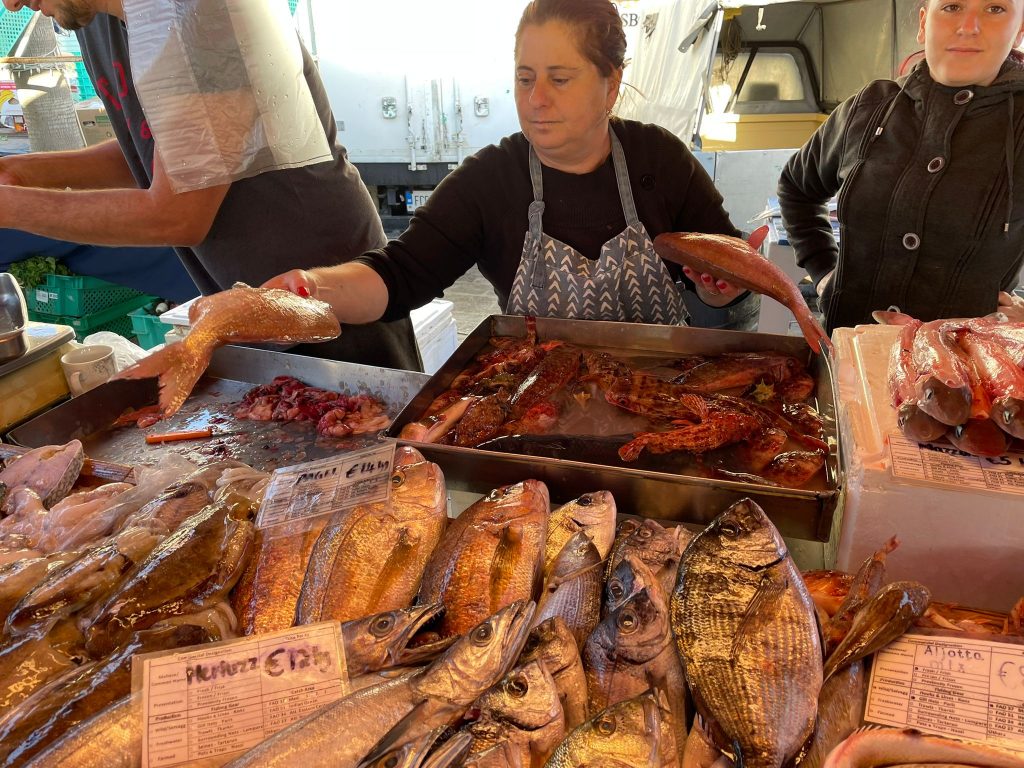 Marsaxlokk is a port on the south end of Malta that is renowned for the “luzzu”, a traditional Maltese fishing boat that is usually painted blue, yellow, red and green.  The fisherman head out early in the morning and by sunrise are coming back in with their day’s catch.  Each Sunday morning, the fish market opens around 7:30am and today we made a point of driving across the island to be there when the market opened.