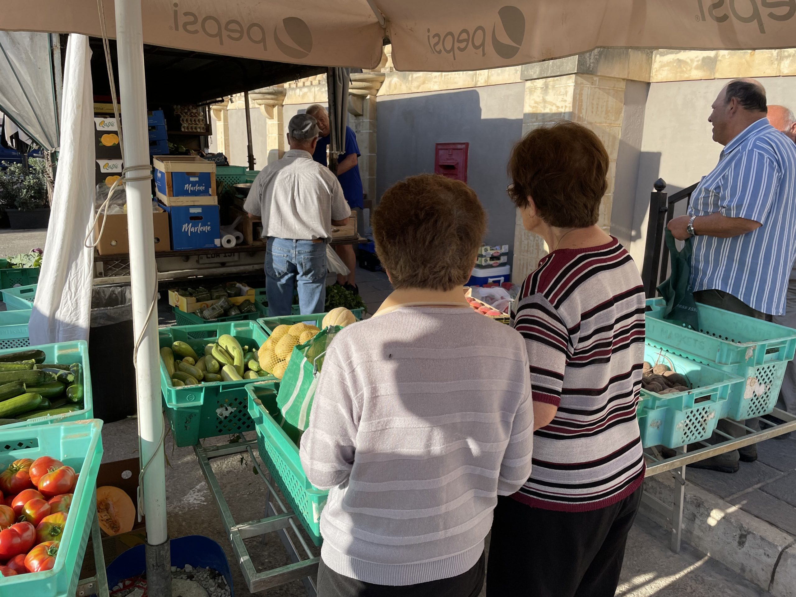 As we mentioned previously, we have been going to the fruit and vegetable market on Tuesdays and/or Fridays.  The market consists of a single farmer who brings his truck up to the church square and sells produce to the locals in Mellieha.